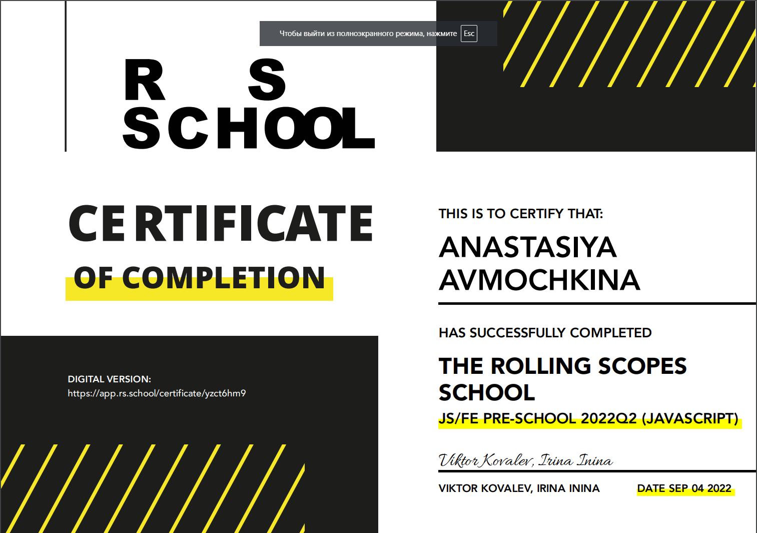 It happened that I got interested in design and web development, so I finished a design course in 2021. Thanks to that I have acquired some knowledge of HTML and CSS, design systems and UX patterns.Now my focus is on front-end development and RS School helps me to learn it. I'm willing to study and become an excellent front-end developer. I'm excited about what I've been working on.